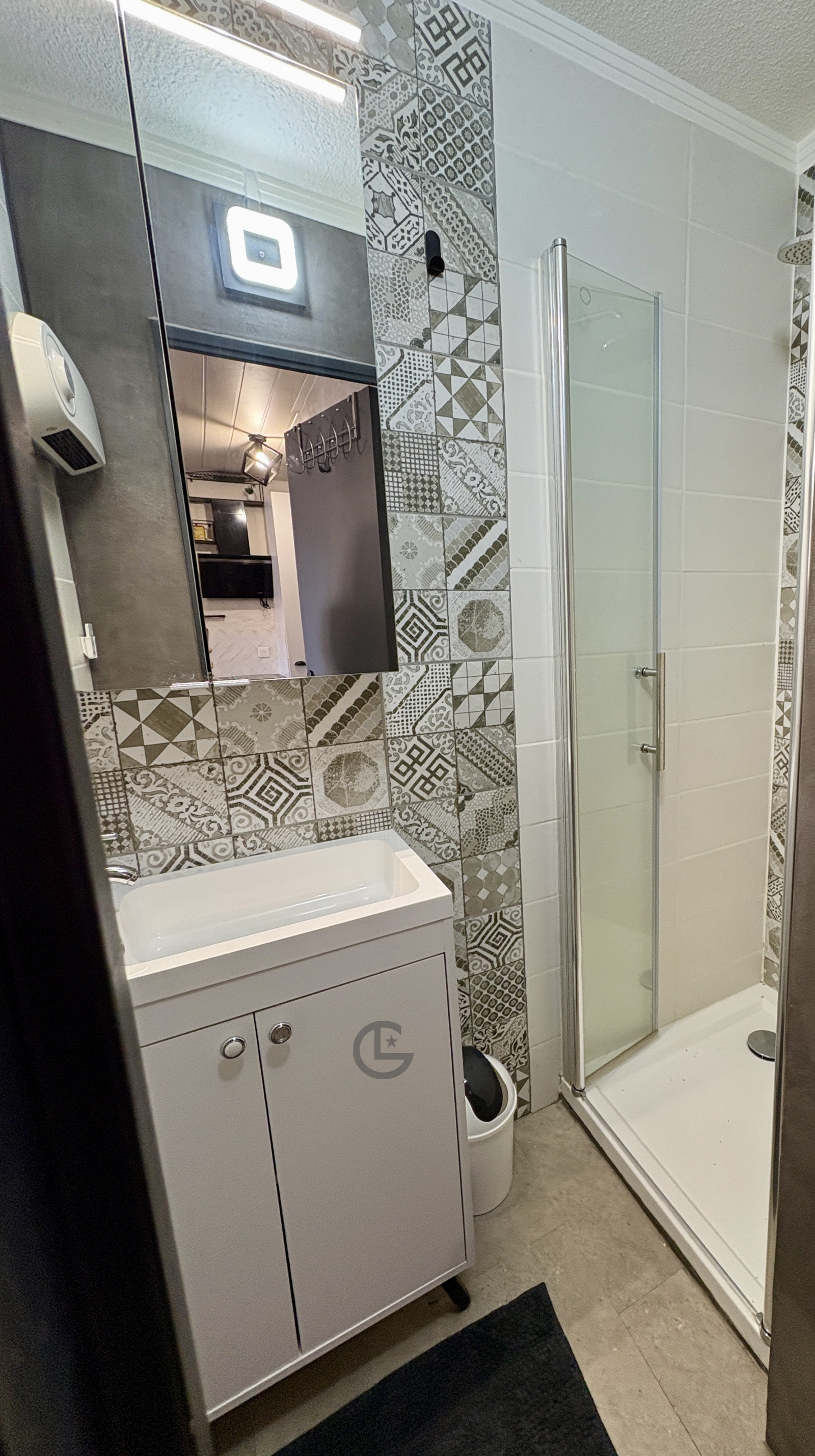 Studio de 25 m2 avec balcon de 3 m2 : séjour avec coin cuisine équipée, chambre, placard, salle d'eau, wc avec lave-mains