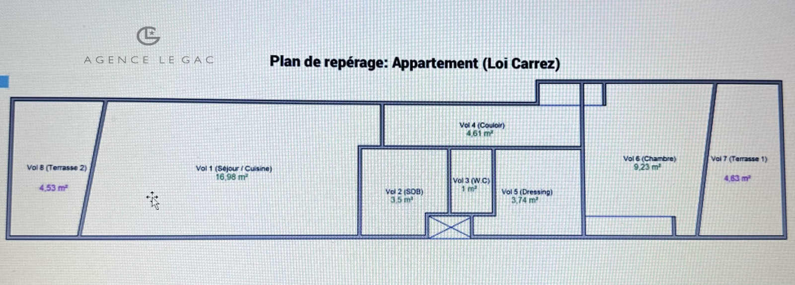 Séjour, cuisine équipée ouverte, 1 chambre, espace supplémentaire pour dressing ou bureau, 1 salle d'eau, wc indépendants.