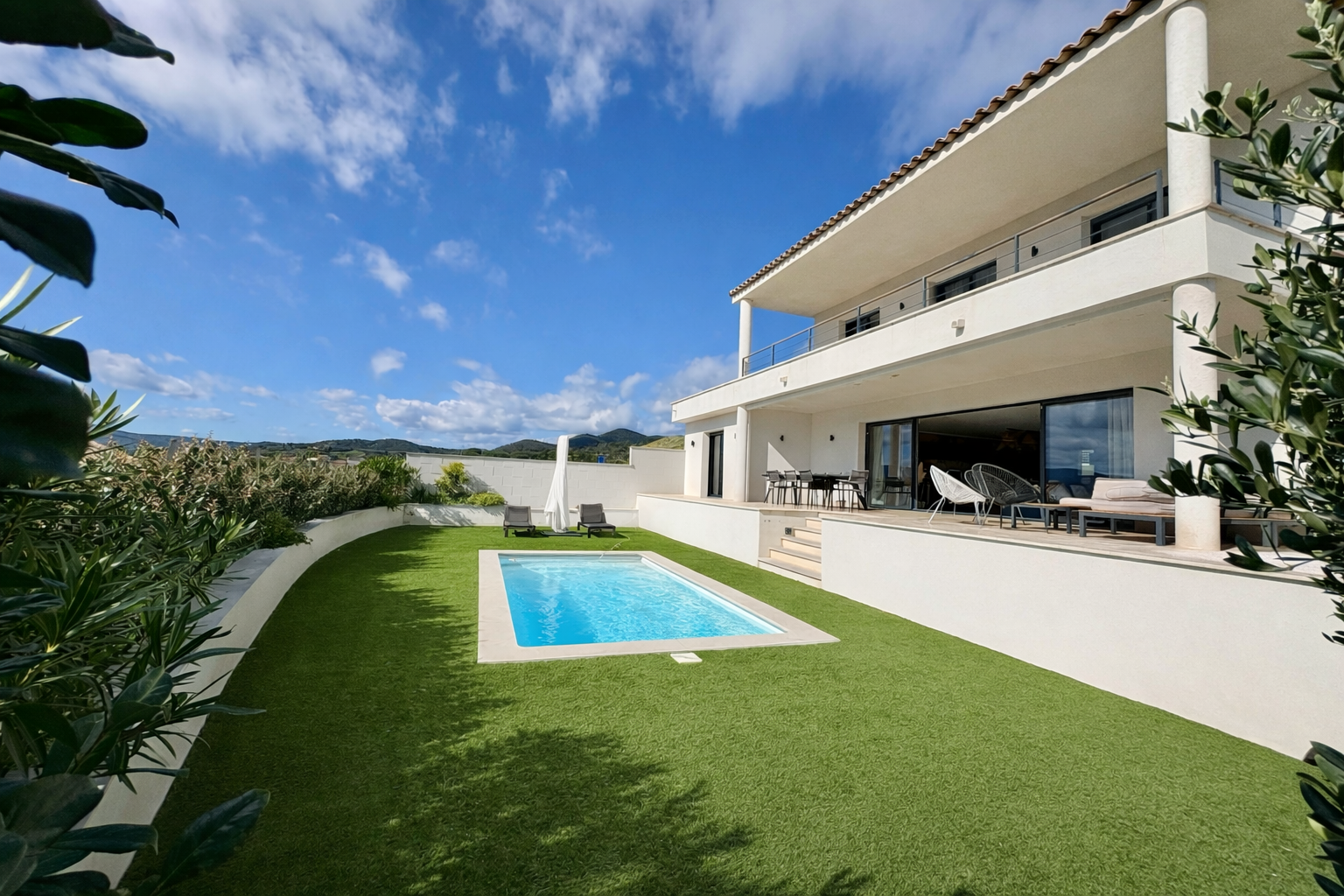 Vue panoramique collines et aperçu mer, exposée sud/sud-ouest