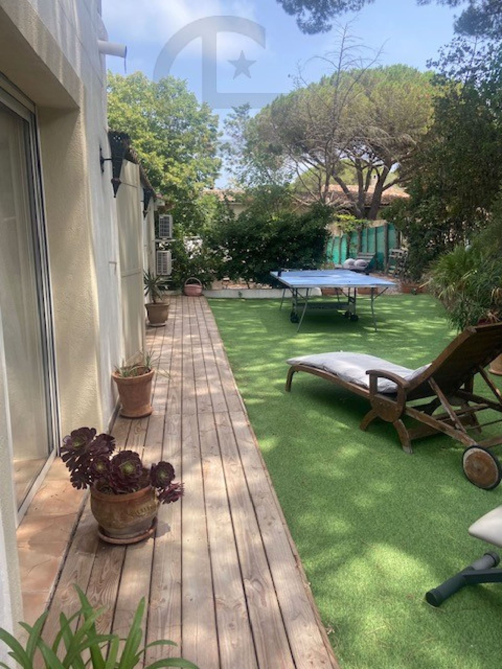 Spacieux séjour de 70 m2 avec un espace salon cheminée, salle à manger, bureau, cuisine équipée indépendante, 3 chambres dont en suite avec solarium privé.